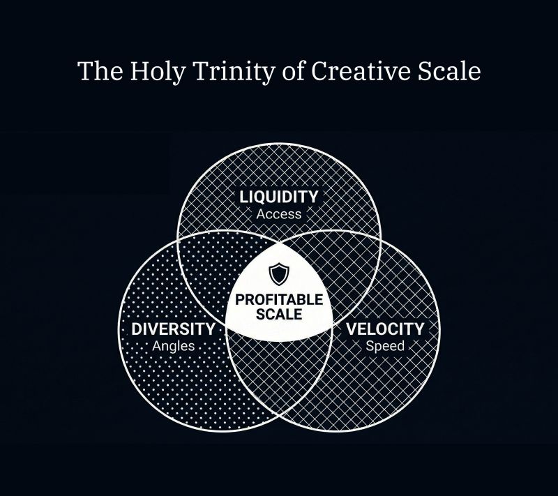 You used to win by configuring better hacks in Ads Manager. Today, you win through constant production of new, diverse, and better creatives. This isn't about making your ads prettier—it's about feeding the algorithmic machine that controls your profitability.